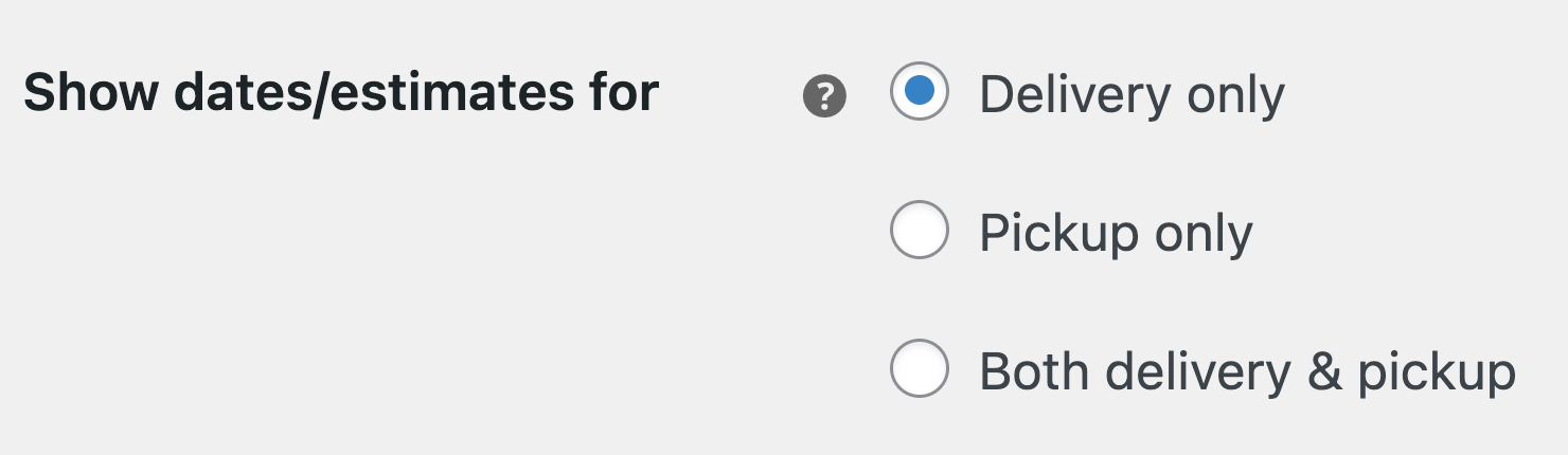 Because your delivery days, timeframes, and ranges may include specific shipping method rules, Order Delivery will automatically set Show dates/estimates for to Delivery only during the migration to v4. This ensures all existing data remains intact, as it is currently stored under delivery.